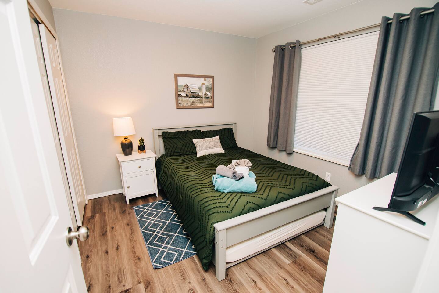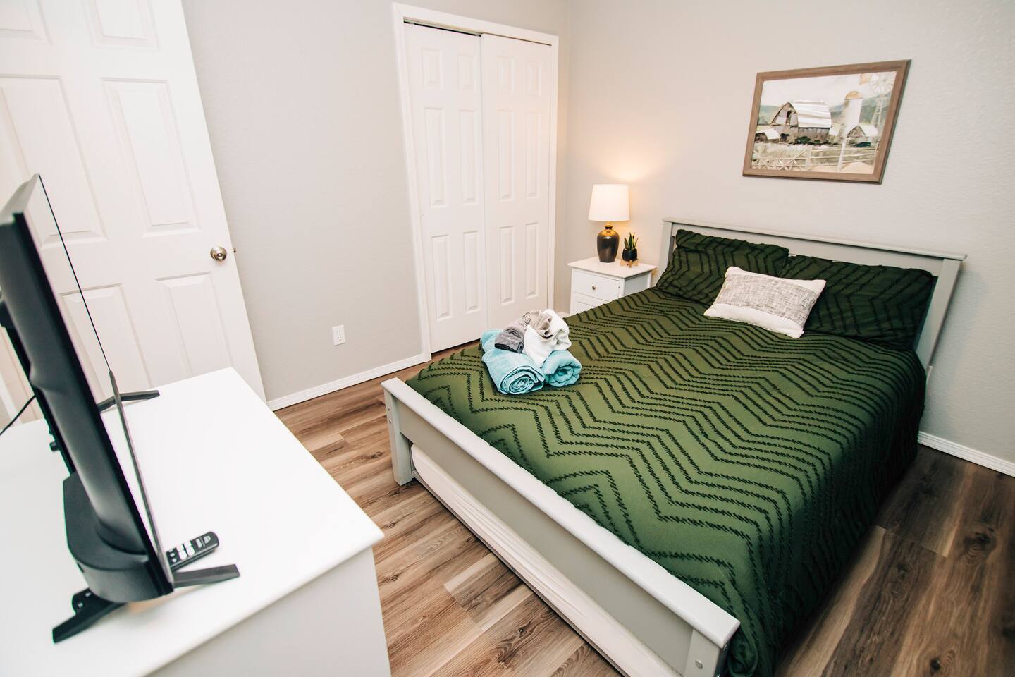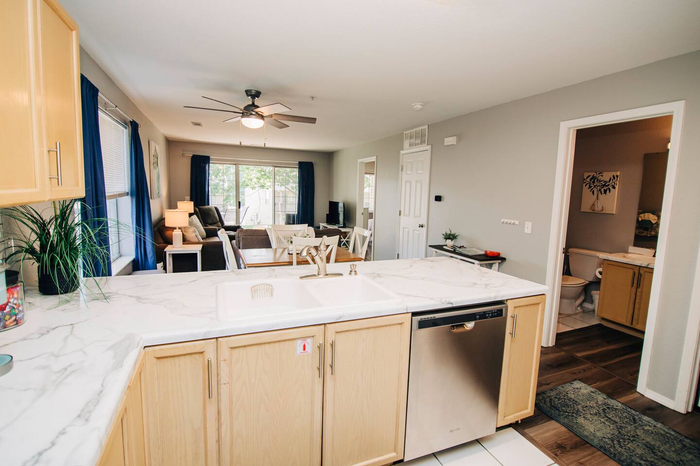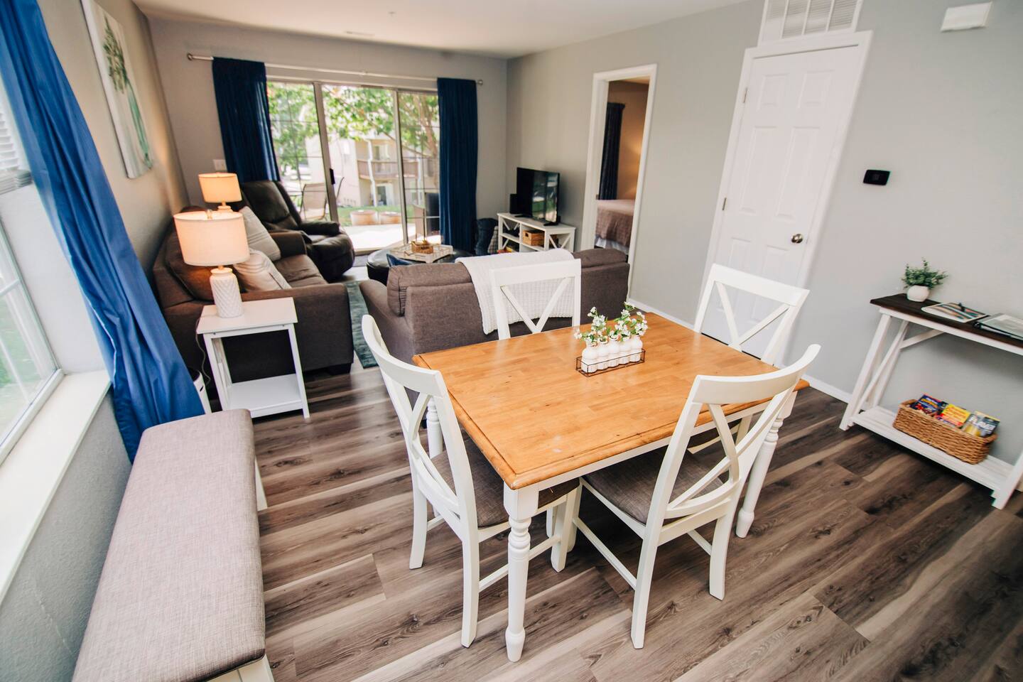 Whether you're looking to unwind or dive into the excitement of the area, you'll find everything just a stone's throw away. A short stroll brings you to Fall Creek Marina on Lake Taneycomo - perfect for fishing, kayaking, or soaking in the view! Moonshine Beach and the Table Rock Dam are just around the corner. Head the other way, and in just minutes you'll find yourself on the famous 76 Strip where entertainment, shopping, and dining await. Also, just 15 minutes to Silver Dollar City and 20 minutes to world-class golf. Our Space: ~ Bedroom 1: Has a King size bed, a smart TV, a full-size closet to hang up your clothes, and an ensuite bathroom with a large vanity and shower/tub combo. ~ Bedroom 2: Has a full-size bed with a full-size trundle bed below, a smart TV, and a full-size closet where you will find stored a pack 'n play, stroller, and highchair. ~ Living Room: 1 Sofa Bed • Rest easy with fresh bedding and towels provided for your comfort • 2 full bathrooms with tub/shower combos • Bath essentials provided • Fully equipped kitchen to make meal prep a breeze • Dishwasher, cookware, utensils (kid friendly plates & cups provided) • In-unit washer and dryer • Parking for up to 2 vehicles ****Please note, that while this condo is on the bottom floor, access from the parking lot does require stairs. There is parking at the opposite end of the building (about a 60-yard walk) with only 2 stairs to get to the bottom floor.****