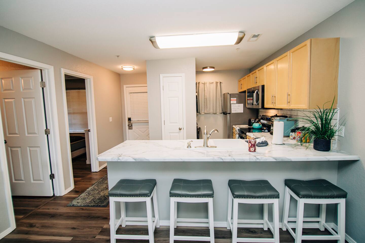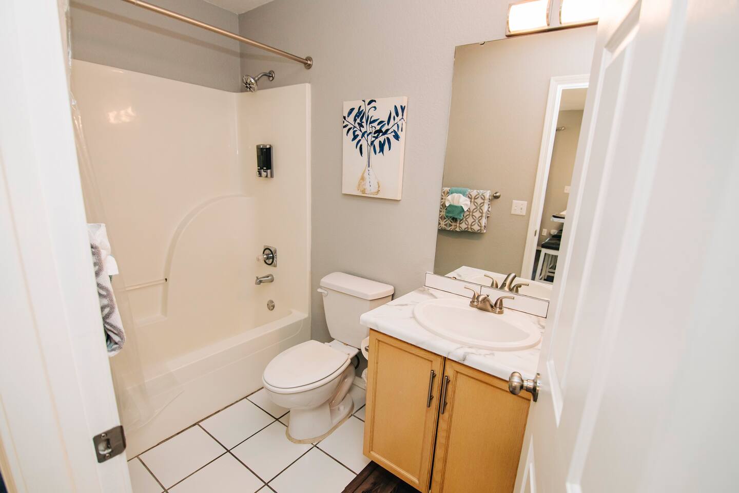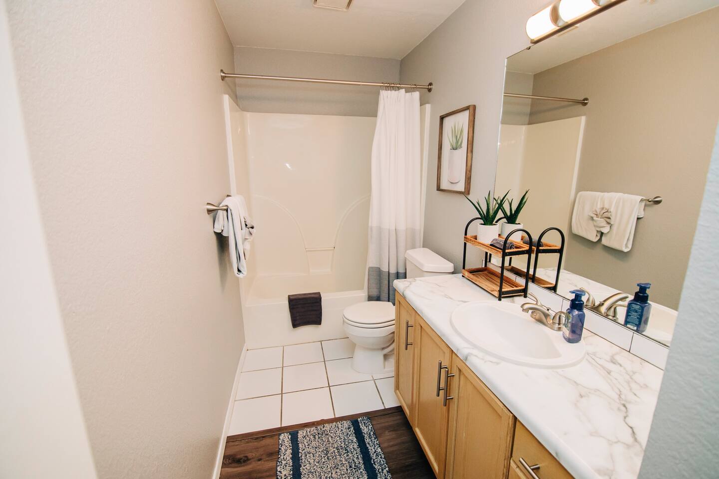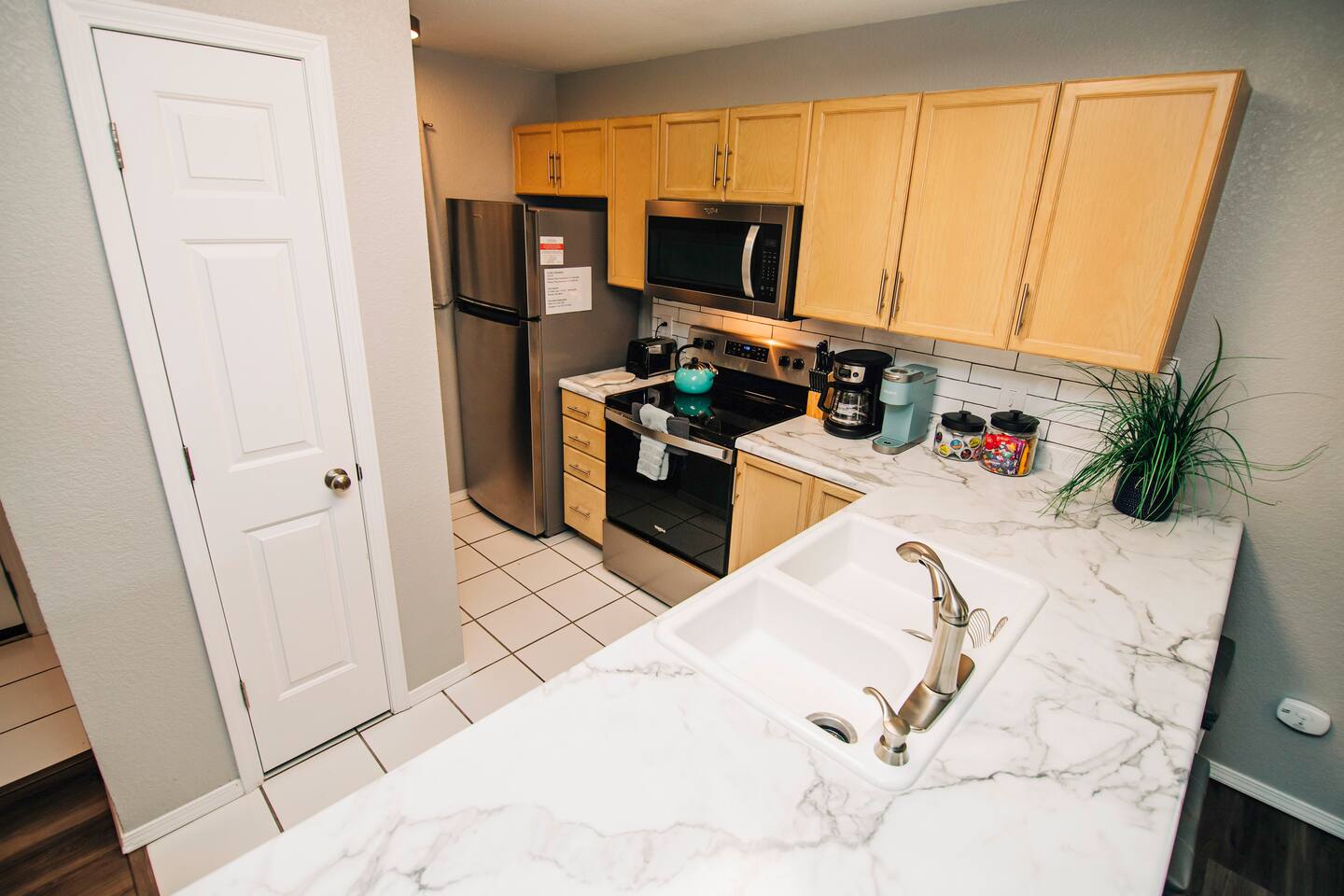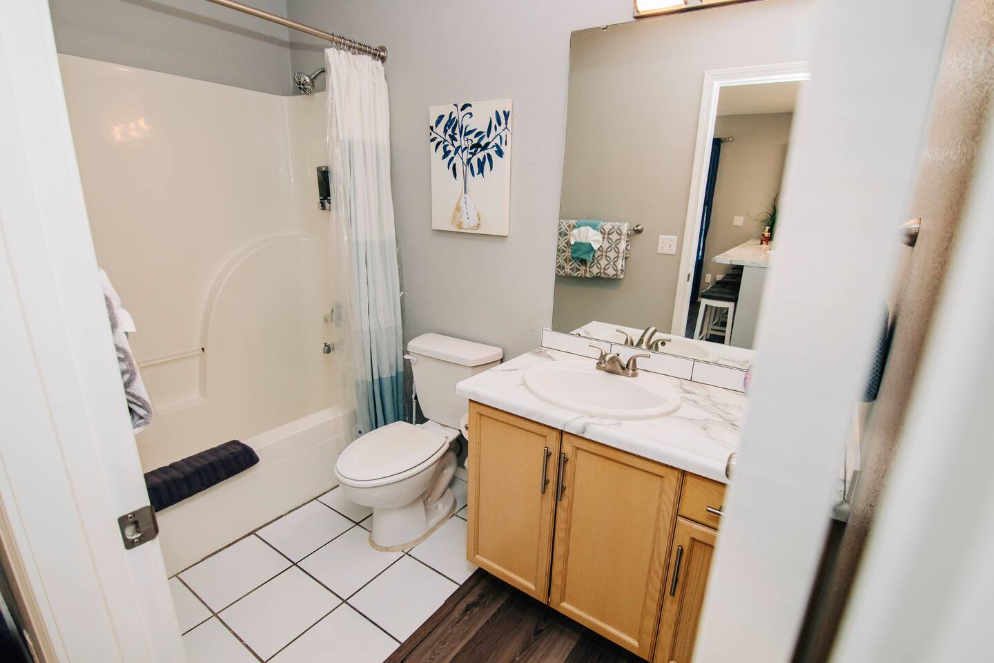 Whether you're looking to unwind or dive into the excitement of the area, you'll find everything just a stone's throw away. A short stroll brings you to Fall Creek Marina on Lake Taneycomo - perfect for fishing, kayaking, or soaking in the view! Moonshine Beach and the Table Rock Dam are just around the corner. Head the other way, and in just minutes you'll find yourself on the famous 76 Strip where entertainment, shopping, and dining await. Also, just 15 minutes to Silver Dollar City and 20 minutes to world-class golf. Our Space: ~ Bedroom 1: Has a King size bed, a smart TV, a full-size closet to hang up your clothes, and an ensuite bathroom with a large vanity and shower/tub combo. ~ Bedroom 2: Has a full-size bed with a full-size trundle bed below, a smart TV, and a full-size closet where you will find stored a pack 'n play, stroller, and highchair. ~ Living Room: 1 Sofa Bed • Rest easy with fresh bedding and towels provided for your comfort • 2 full bathrooms with tub/shower combos • Bath essentials provided • Fully equipped kitchen to make meal prep a breeze • Dishwasher, cookware, utensils (kid friendly plates & cups provided) • In-unit washer and dryer • Parking for up to 2 vehicles ****Please note, that while this condo is on the bottom floor, access from the parking lot does require stairs. There is parking at the opposite end of the building (about a 60-yard walk) with only 2 stairs to get to the bottom floor.****